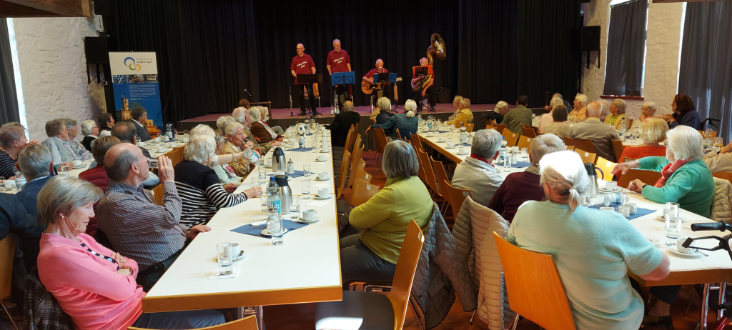 Beim Seniorennachmittag am 2.Mai freuten sich die zahlreichen Besucher über Kaffee und Kuchen und über den unterhaltsamen Auftritt der Gruppe „Pflegestufe 0“.